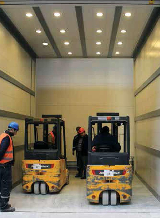 Ascensoarele pot fi hidraulice sau electrice cu sau fara camera masinii. Sunt destinate pentru transportul materialelor/marfurilor si se instaleaza in spatiile de productie , depozite, supermarketuri , spitale, hoteluri, etc.Viteza de deplasare este cuprinsa intre 0,15-0,5m/s cu posibilitatea de a transporta  diferite sarcini.
